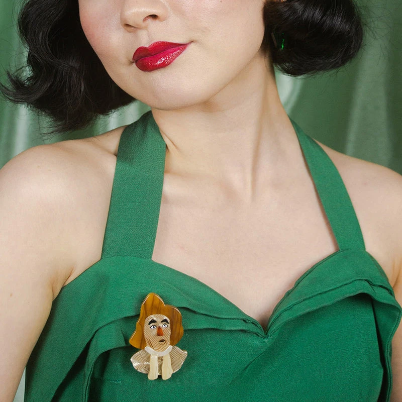 Life can be ding a derry with a brain AND this marvelous Scarecrow Brooch! An assortment of textured resins and hand painted details give this brooch a depth of expression, previously only seen on film. Pin him to any outfit to be reminded that brains aren’t everything.