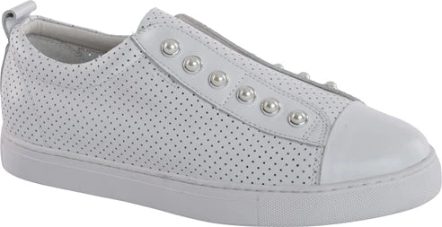 DescriptionAn alternative to our favourite Pearl sneaker, the Pearl Perf offers the same great features PLUS perforated leather.Slip in and out of Pearl Perf with ease thanks to the hidden elastic, this elastic also assists with adjustability making these the perfect shoe for all sizes!Handcrafted using soft quality leathers, a non-slip flexible rubber sole and a padded insole, you can ensure comfort all day long. This sneaker also features two rows of pearl embellishments running down the front of the shoe.