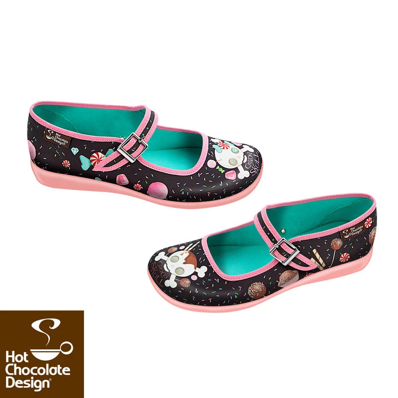 Submerge your feet in a candy and choc with sprinkles on top. Adorable choco and candy skulls in classic black and pink jump from the toes of this supercute pair.
